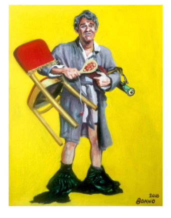 Chris Bonno's development as an artist has paralleled his work as an improviser, actor and comedian. With the art work being ongoing, his career as a performer has consisted of numerous appearances on tv shows and films as well as years featuring as a standing up comedian in clubs in New York, Vegas, Chicago, Austin, Los Angeles and Canada.